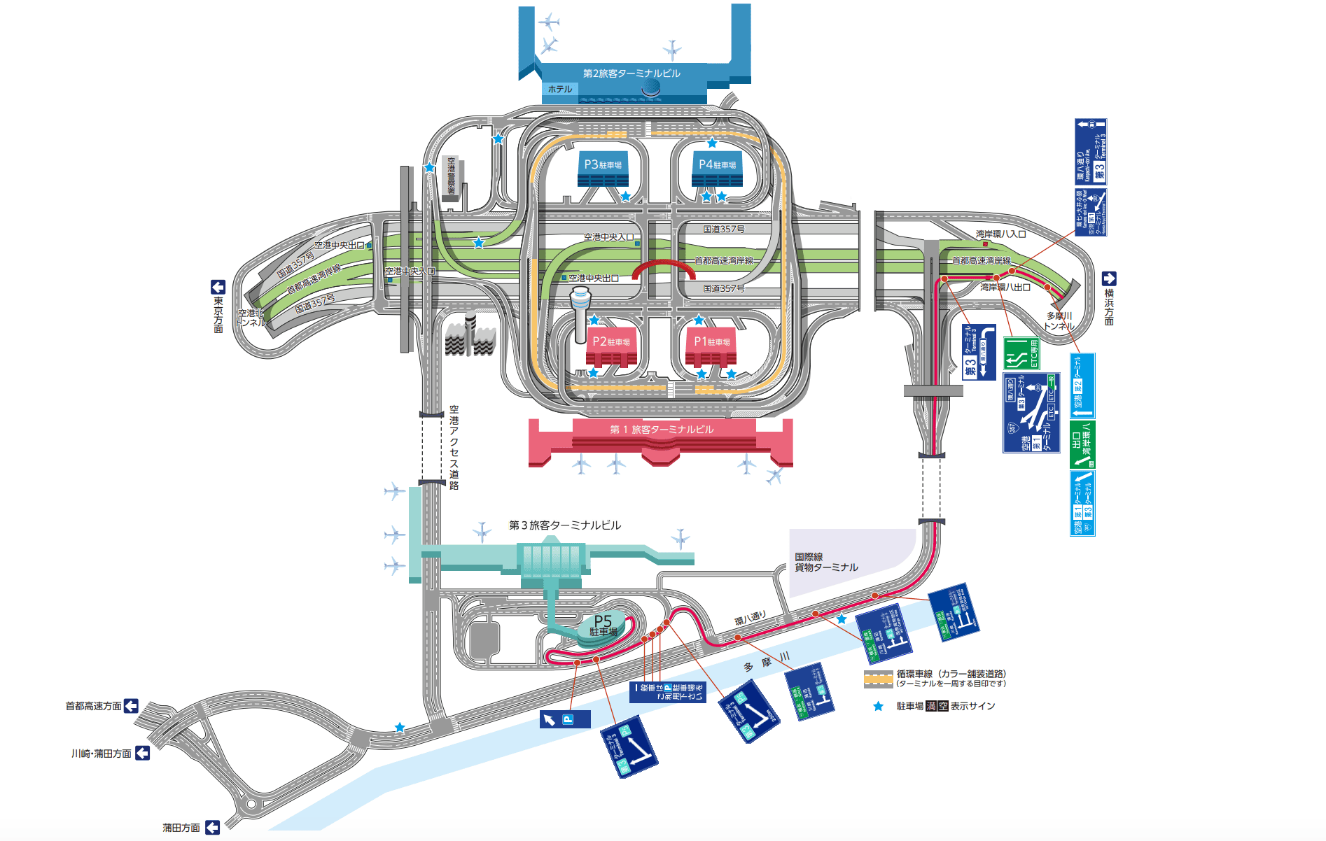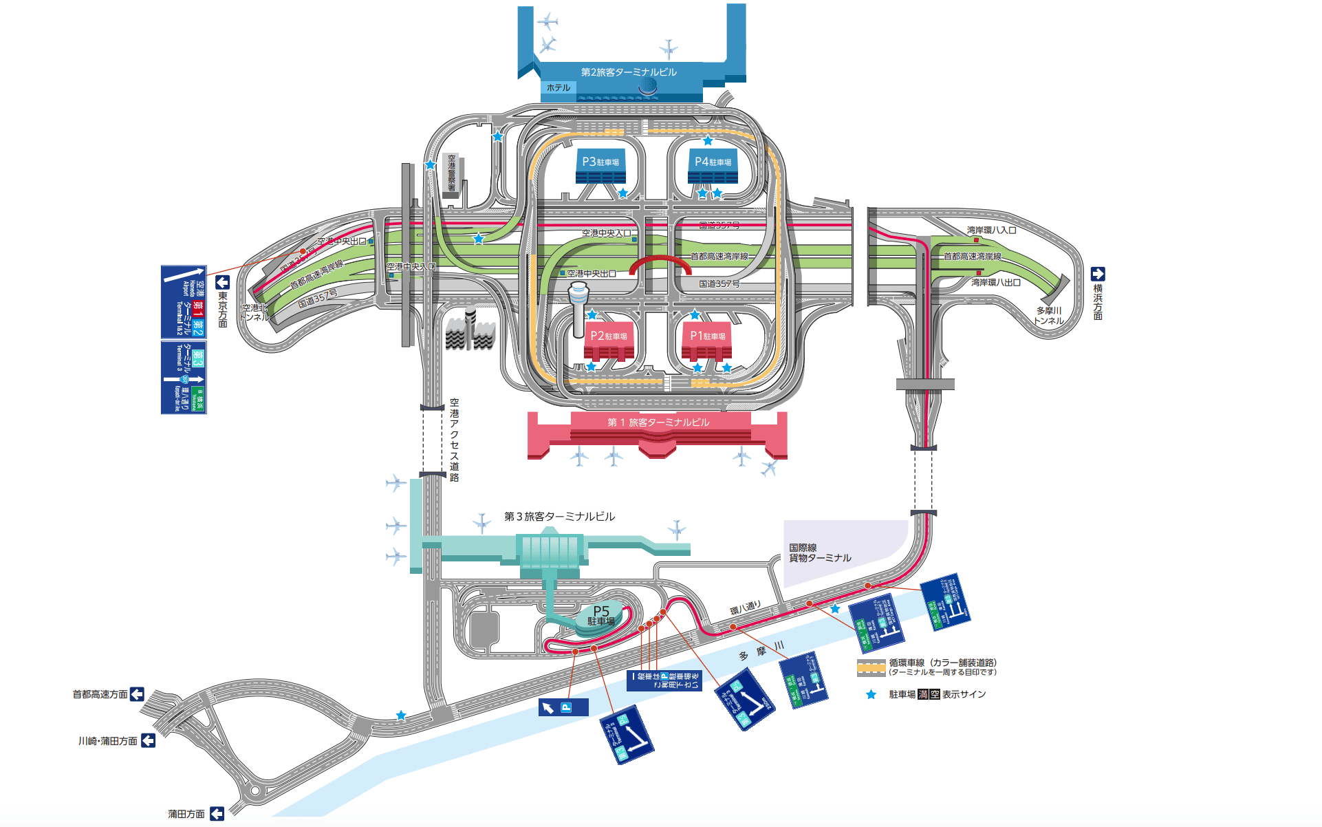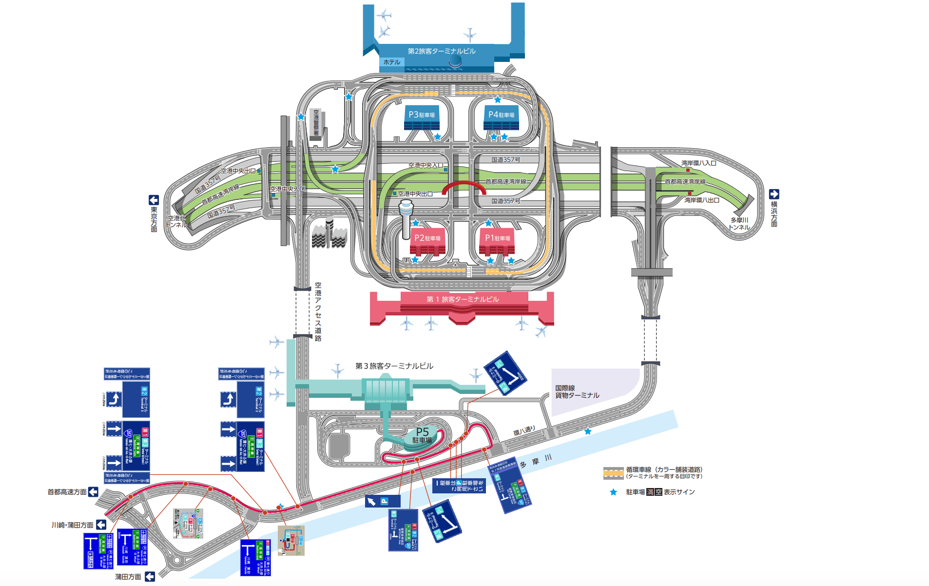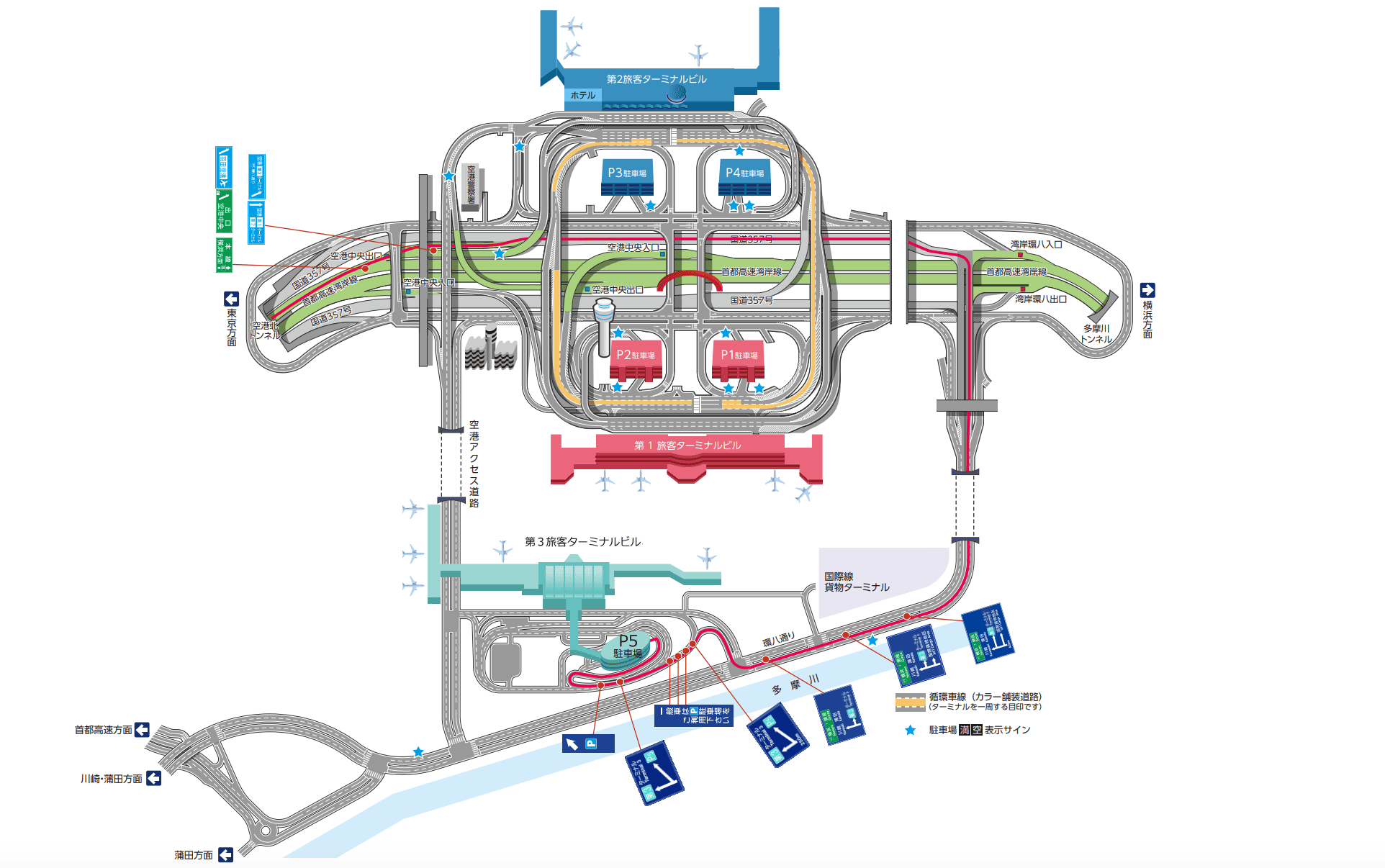 羽田空港駐車場P5への行き方について、東京方面と横浜方面の2つに分けて解説します。